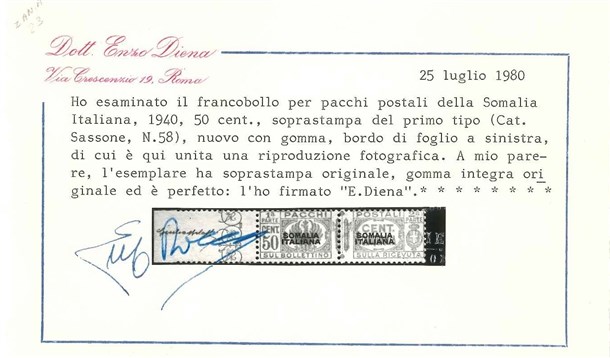 Cert. En. Diena. Firma A. Diena, G. Bolaffi