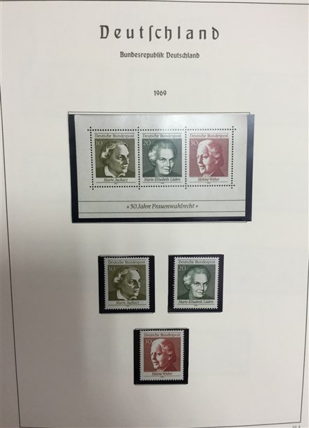 Collezione del periodo, specializzata per le prime emissioni, con posta aerea, servizi, posta militare e occupazioni. Alcuni certificati. In 2 album Davo. In aggiunta una collezione di Germania federale anni '50/'70. Da esaminare