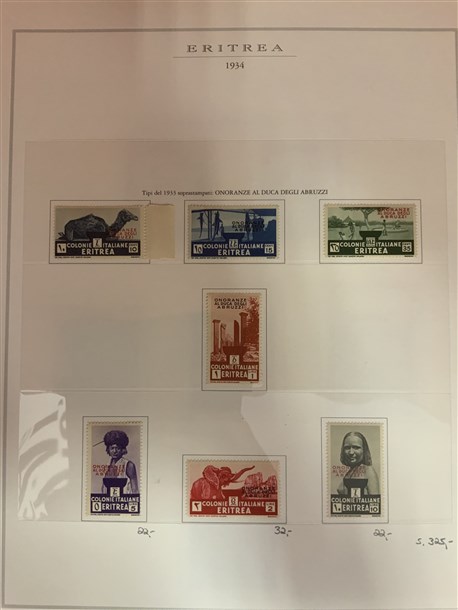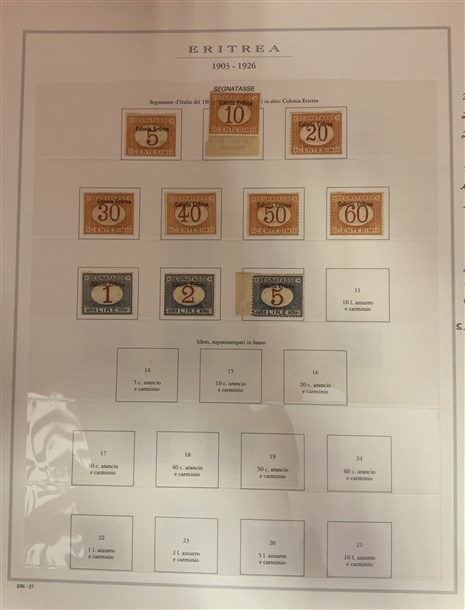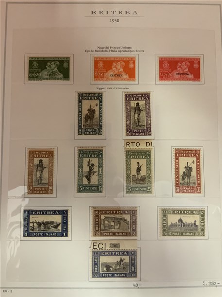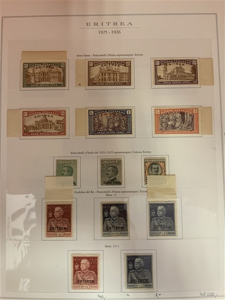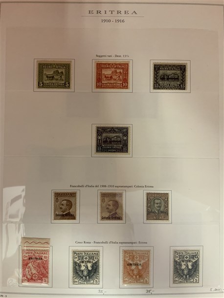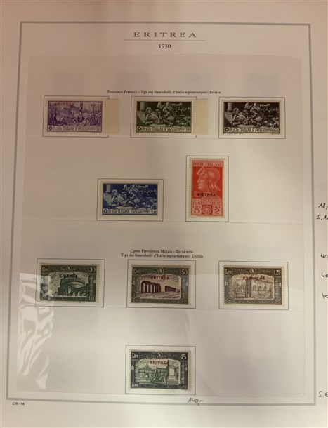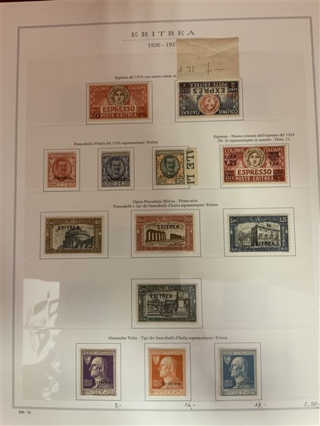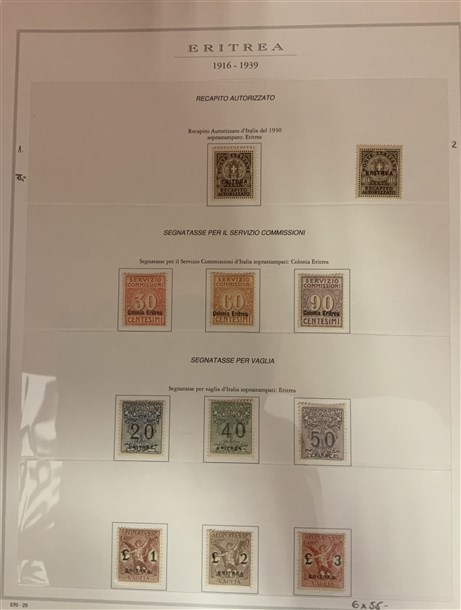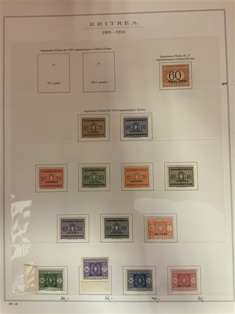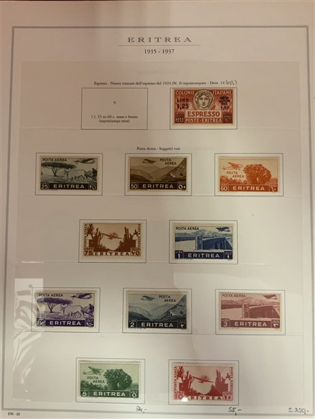 ERITREA 1893/1936 Collezione avanzata del periodo, montata su album Marini. Mat