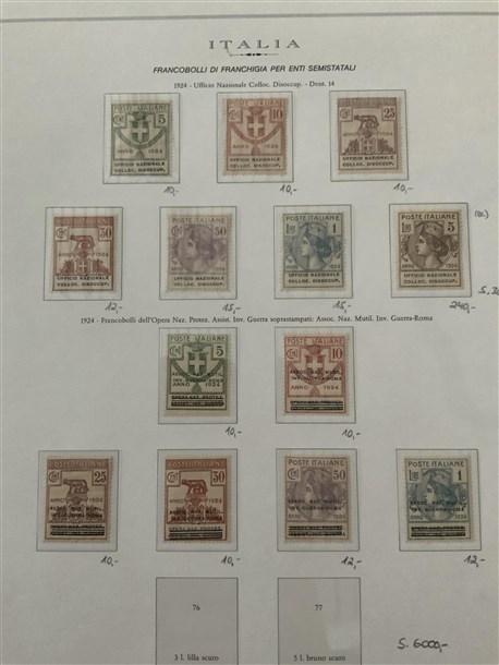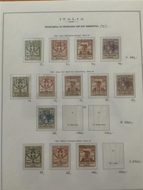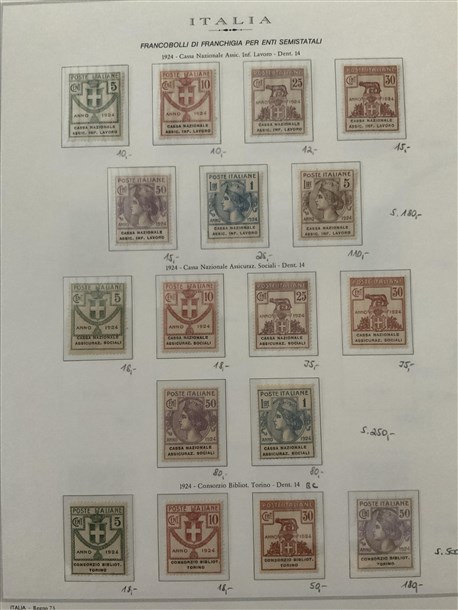 REGNO D'ITALIA 1924 Parastatali. Collezione non completa formata da esemplari d