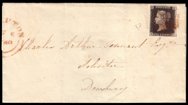GREAT BRITAIN 1840 (jun. 6) Folded letter to Deiosbury franked with 1d. black "