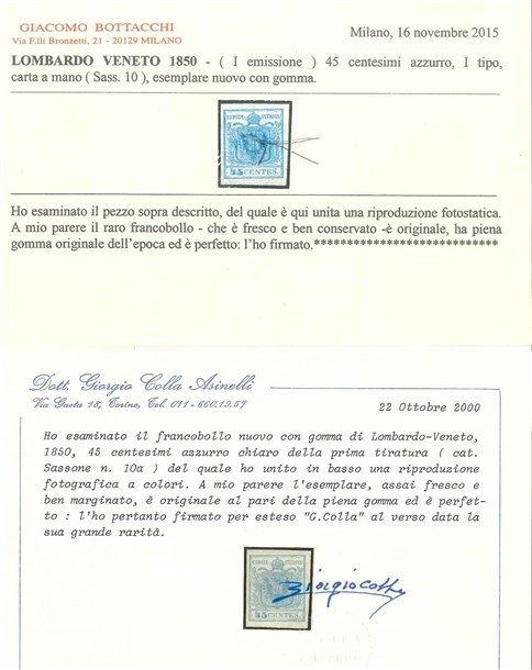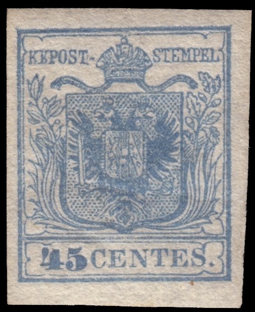 Lot 121 | LOMBARDO-VENETO 1850/1854 45c. azzurro I tipo, carta a mano Provenienza Collez