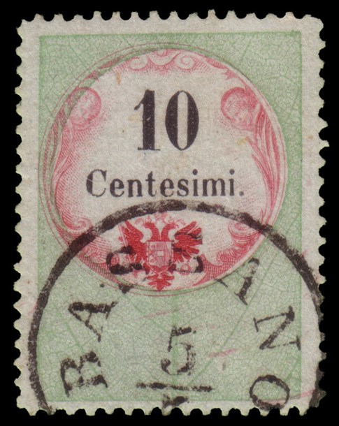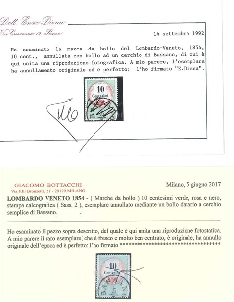 Lot 163 | LOMBARDO-VENETO 1854 Marche da bollo. Caratteri tipografici. 10c. verde, rosa e
