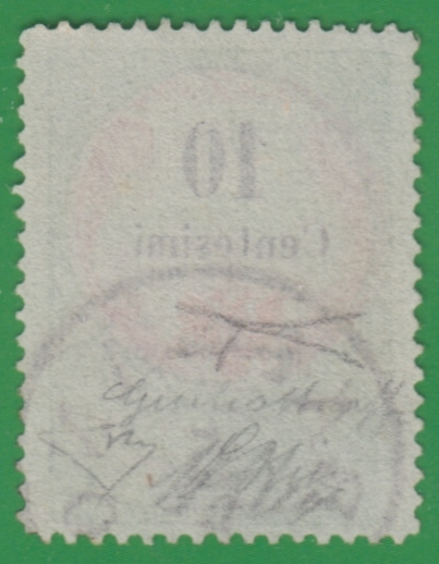 Marche da bollo. Caratteri tipografici. 10c. verde, rosa e nero, usata a Bassano