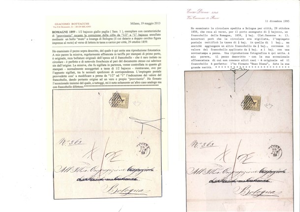 Di questa eccezionale modifica a penna del valore, sono note solamente 2 lettere, essendo l'altra affrancata con un esemplare difettoso, questa è la migliore.