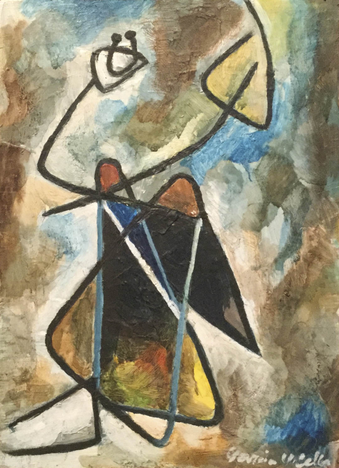 Francisco Garcia Vilella (Barcelona/Barcellona 1922 - 2000) Compofirmation, 1960;Olio su compensato, 23 x 33 cm