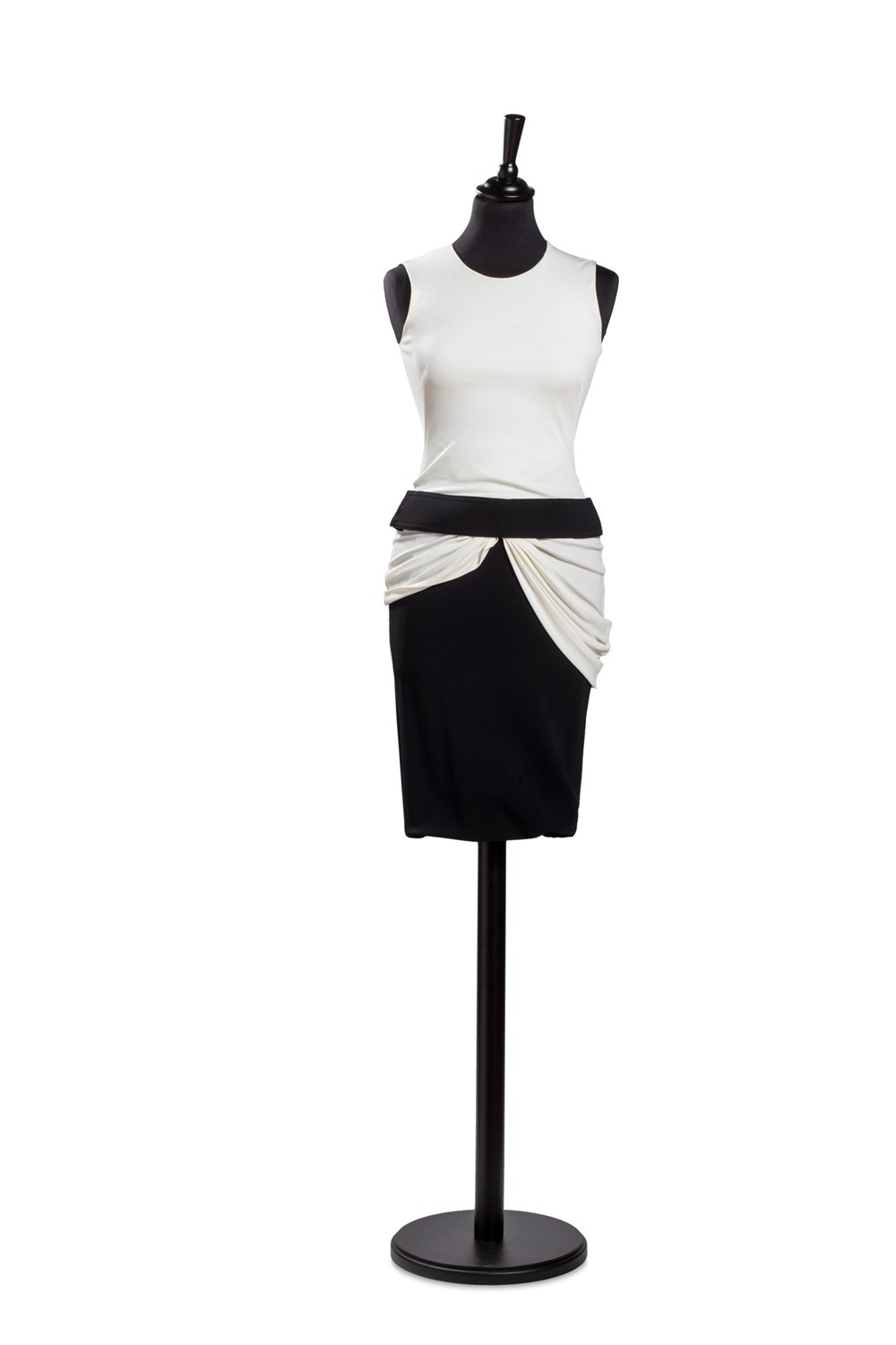 in tessuto color bianco e nero, cintura applicata e chiusura con zip sul retro, tg 38 italiana