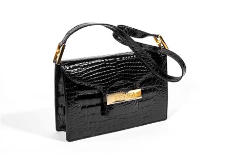 color nero con tracolla, chiusura con grande dettaglio logato in metallo dorato, cm 22, con sacchettocolor nero con tracolla, chiusura con grande dettaglio logato in metallo dorato, cm 22, con sacchetto
