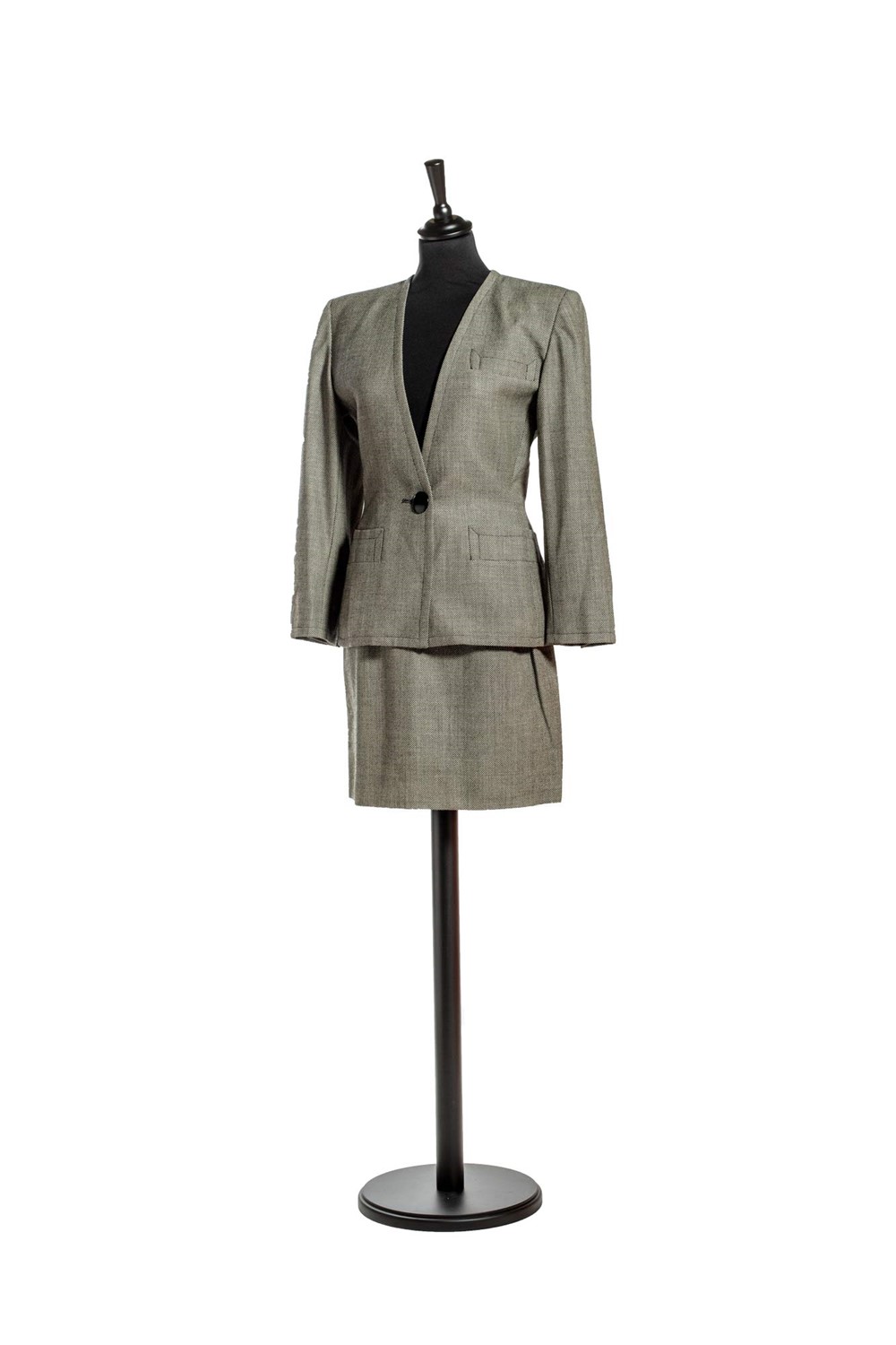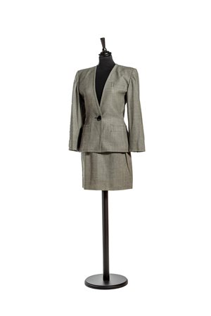 a un bottone in lana color bianco e nero con gonna, tg 36 francesea un bottone in lana color bianco e nero con gonna, tg 36 francese