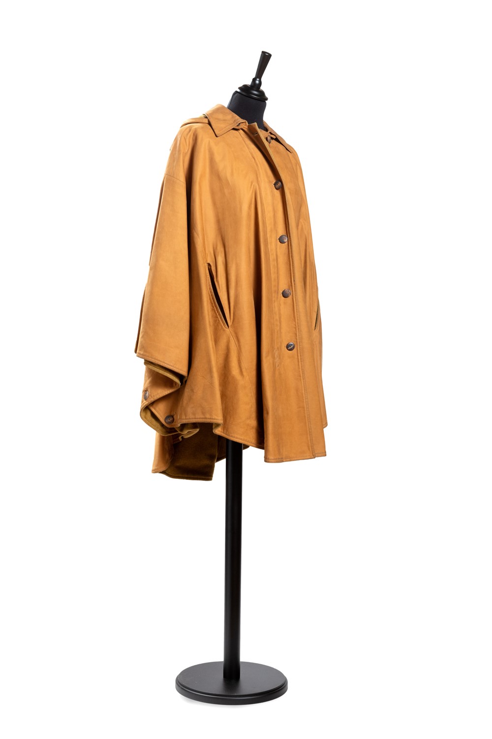 in pelle e tessuto color camoscio, con collo, aperture laterali, chiusura con zip e sei bottoni in resina, tg 42 italiana (difetti)in pelle e tessuto color camoscio, con collo, aperture laterali, chiusura con zip e sei bottoni in resina, tg 42 italiana (difetti)