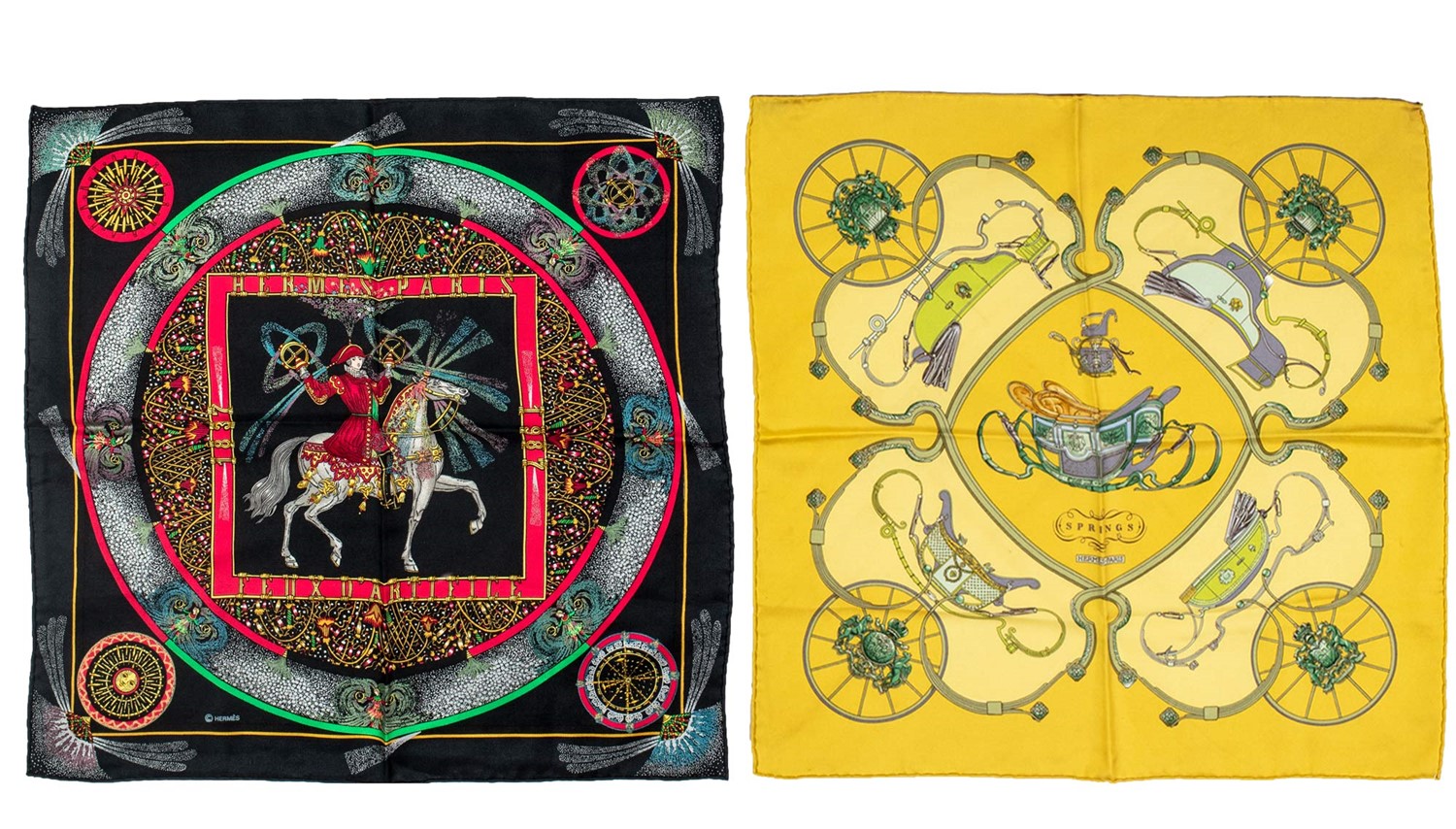 Hermès - Lot comprising two silk twill scarves