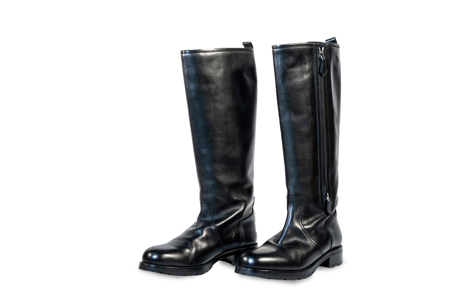 in pelle color nero, chiusura a cerniera, suola a carrarmato, misura 41, con sacchetto e scatolain pelle color nero, chiusura a cerniera, suola a carrarmato, misura 41, con sacchetto e scatola