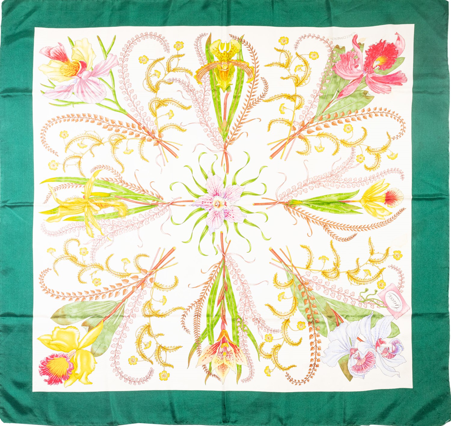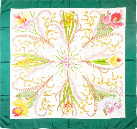 in seta su fondo bianco, bordo color verde, V. Accornero (difetti)in seta su fondo bianco, bordo color verde, V. Accornero (difetti)