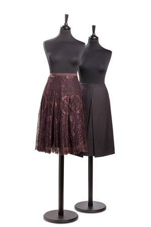 una in tessuto color bordeaux con fodera in lana e seta, ed una in lana color nero con fodera in seta, entrambe tg 40 francese