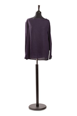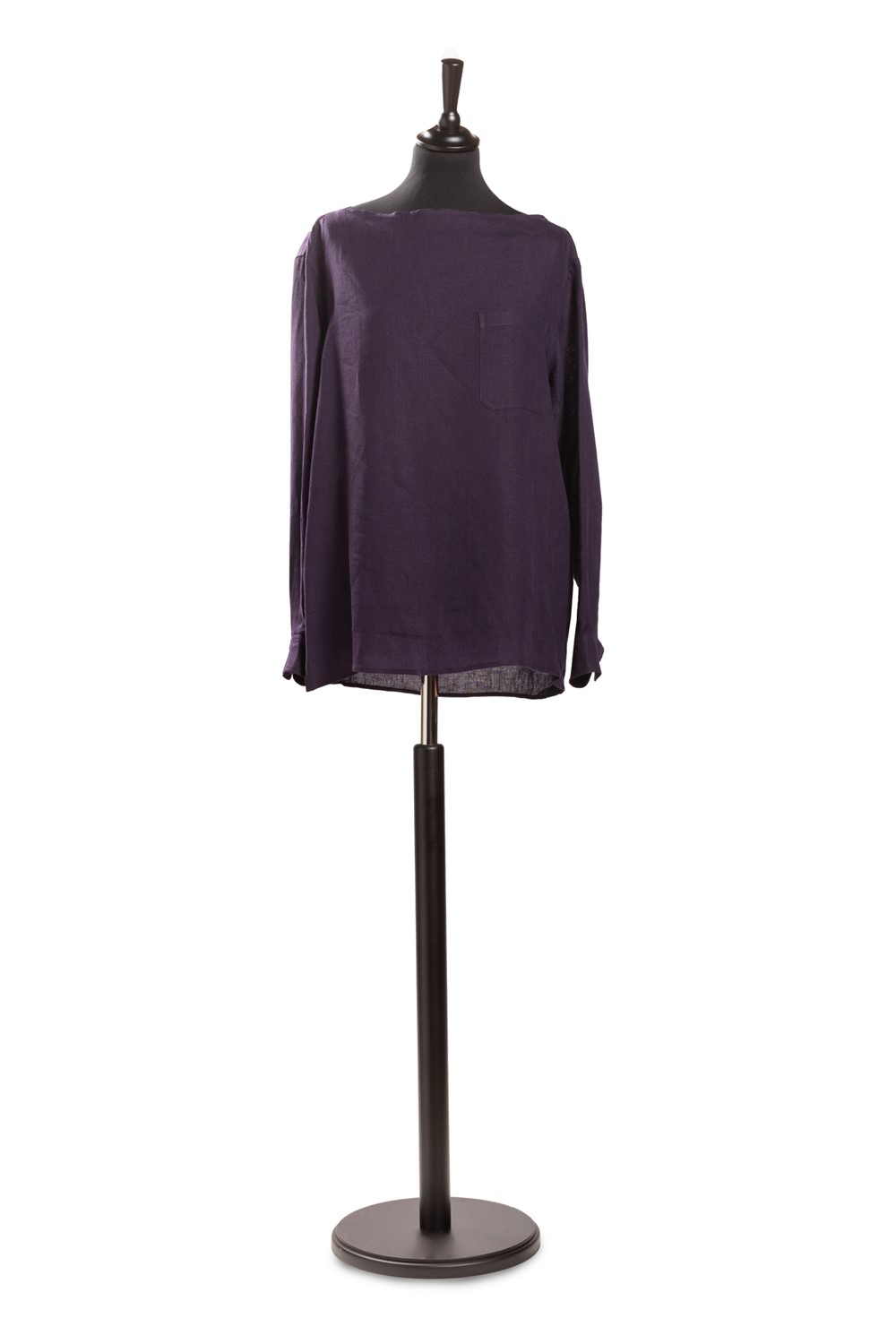 in lino color blu, a manica lunga, con tasca applicata, tg 38 francese in lino color blu, a manica lunga, con tasca applicata, tg 38 francese