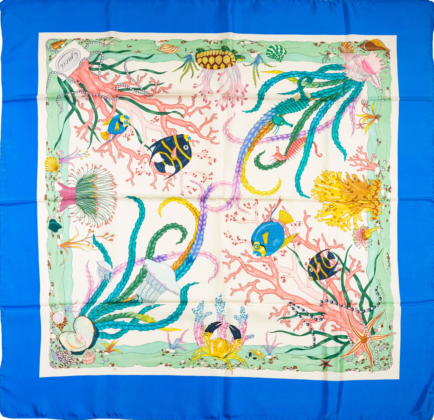 in seta con bordo color blu elettrico, V. Accornero (difetti)in seta con bordo color blu elettrico, V. Accornero (difetti)