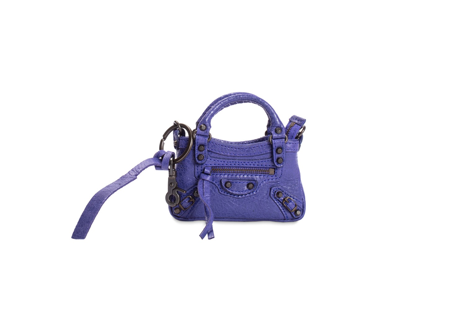 borsettina porta chiavi in pelle color viola, dettagli in metallo brunito, cm 10, con scatolaborsettina porta chiavi in pelle color viola, dettagli in metallo brunito, cm 10, con scatola