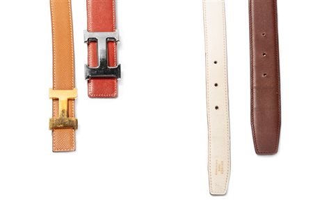 in pelle double face, con fibbie in metallo, cm 90 e 94 (difetti)in pelle double face, con fibbie in metallo, cm 90 e 94 (difetti)