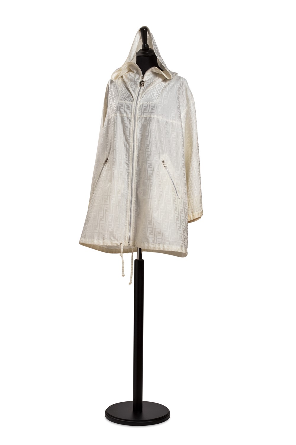 in tessuto color bianco logato, due tasche e chiusura con zip, tg 40 italiana (difetti)in tessuto color bianco logato, due tasche e chiusura con zip, tg 40 italiana (difetti)