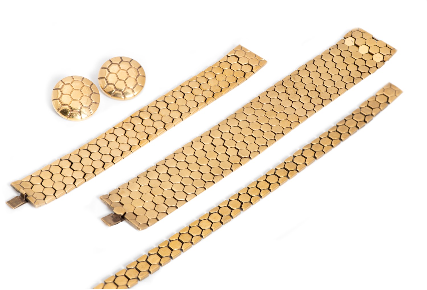 Lot comprising of a necklace, two bracelets and a pair of earrings