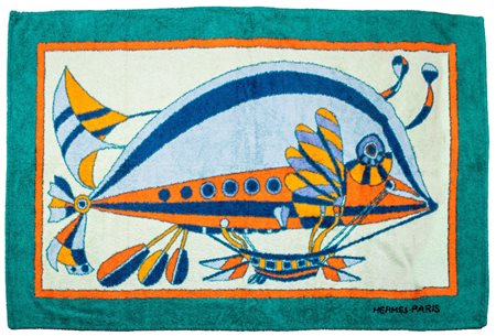 in spugna di cotone fantasia pesci colori vari, bordo verde acqua, cm 90 x 150 (lievi difetti)in spugna di cotone fantasia pesci colori vari, bordo verde acqua, cm 90 x 150 (lievi difetti)