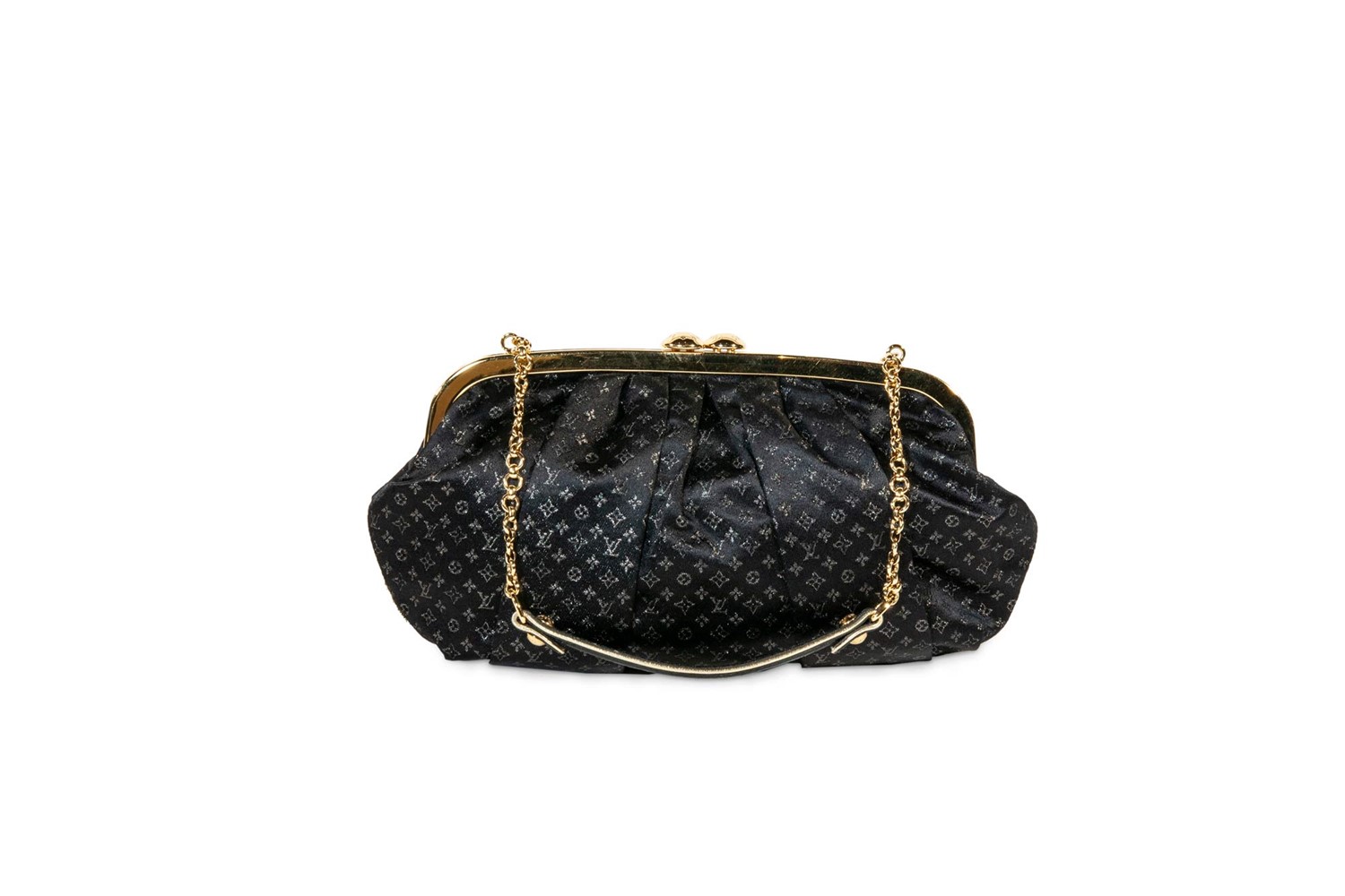 in raso logato color nero, manico a catena e dettagli in metallo dorato, cm 25, con sacchettoin raso logato color nero, manico a catena e dettagli in metallo dorato, cm 25, con sacchetto