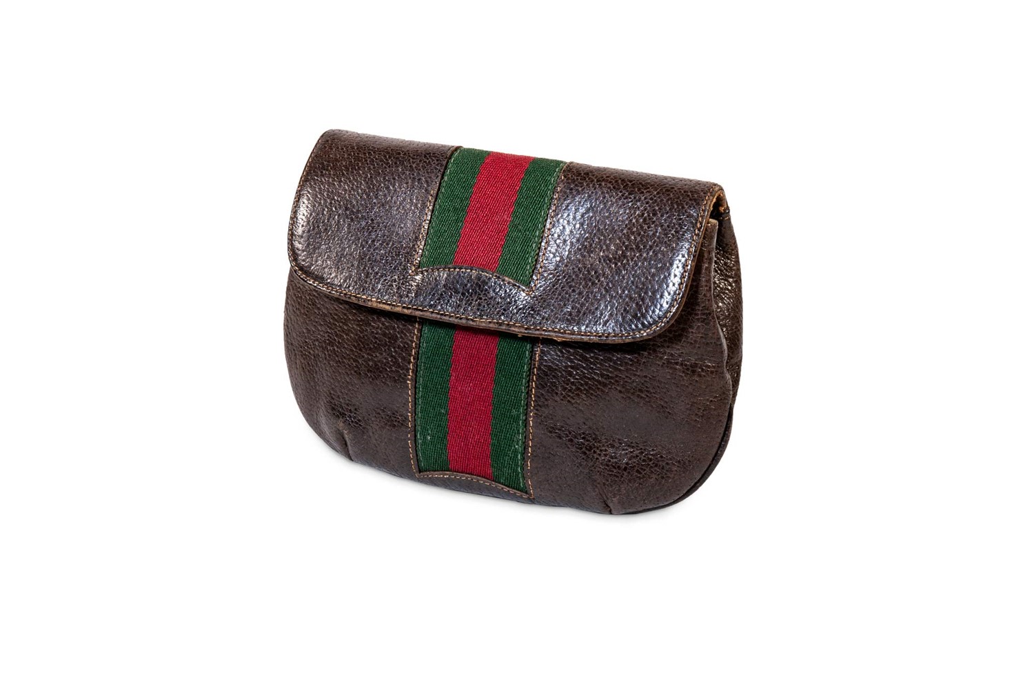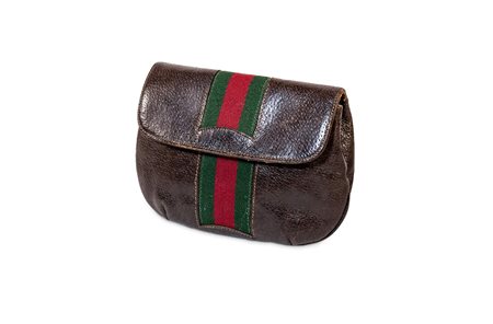 in pelle di cinghiale color marrone, inserto banda web color verde e rosso, cm 20 (lievi difetti)in pelle di cinghiale color marrone, inserto banda web color verde e rosso, cm 20 (lievi difetti)