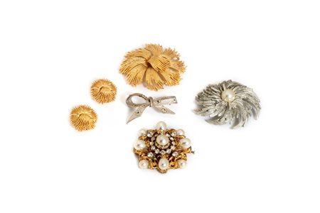 in metallo e metallo dorato, con perle fancy, pietre colorate blu e pietre incolori