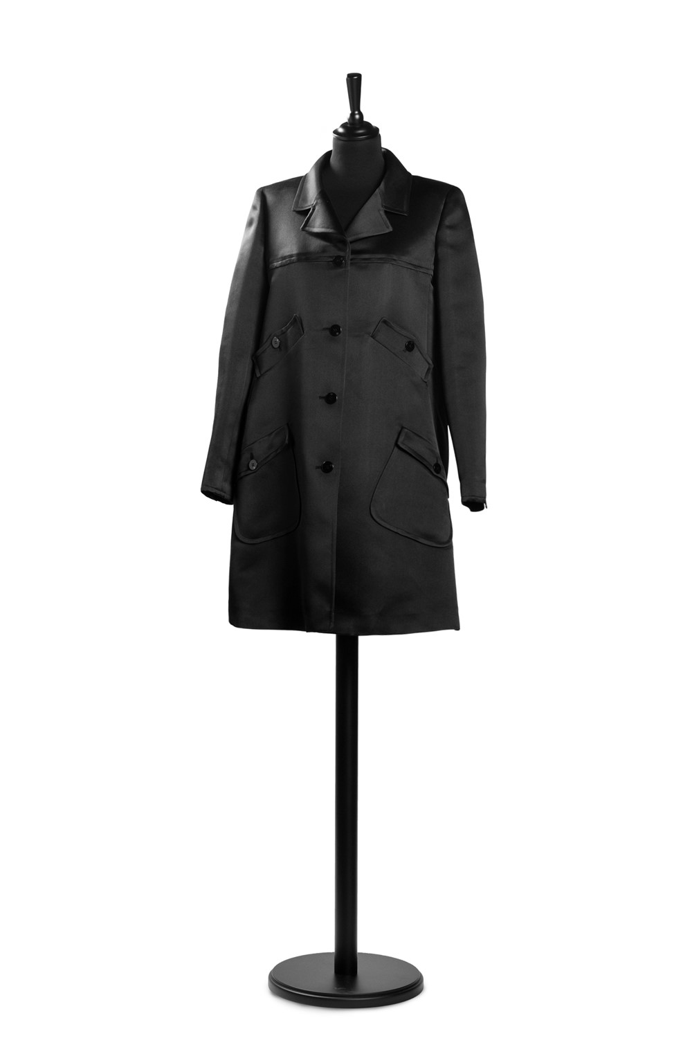 in seta color nero, fodera in seta e quattro tasche con bottoni logati, chiusura con quattro bottoni logati, tg 38 francesein seta color nero, fodera in seta e quattro tasche con bottoni logati, chiusura con quattro bottoni logati, tg 38 francese