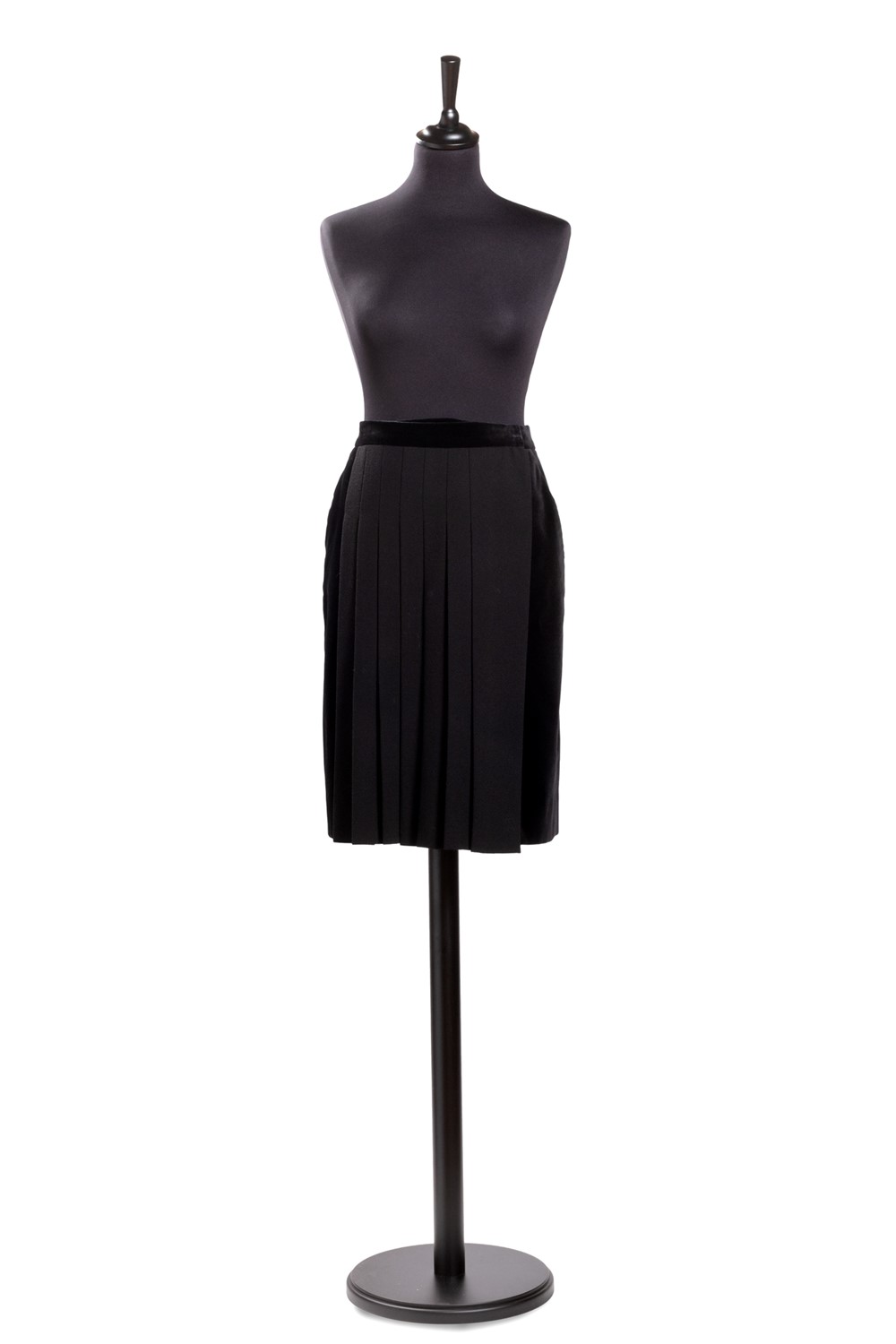 in lana color nero con pieghe, fodera color nero e cupro, tg 42 francesein lana color nero con pieghe, fodera color nero e cupro, tg 42 francese