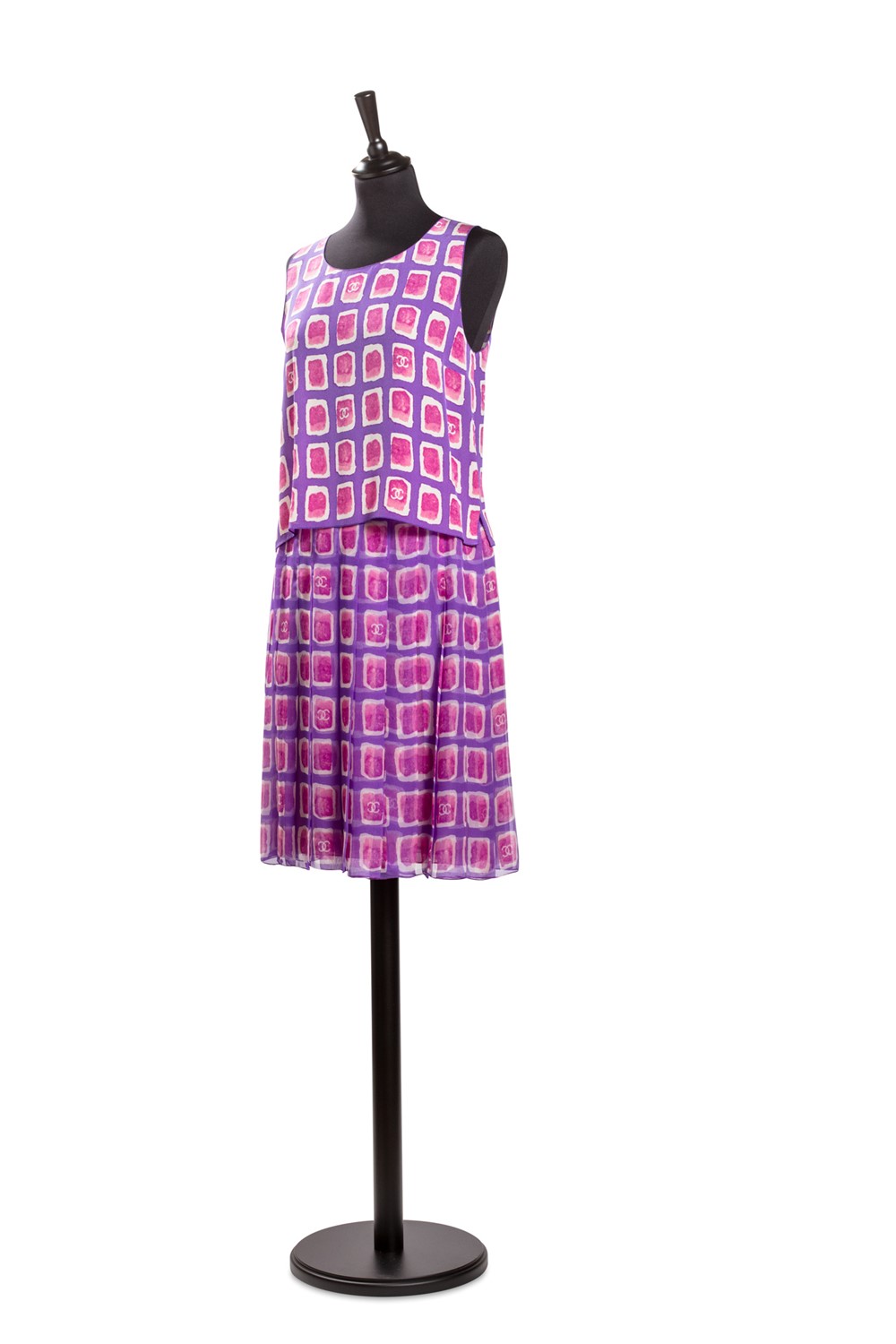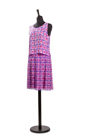 in seta color viola, fucsia e panna, con decoro fantasia, tg 40 francese in seta color viola, fucsia e panna, con decoro fantasia, tg 40 francese