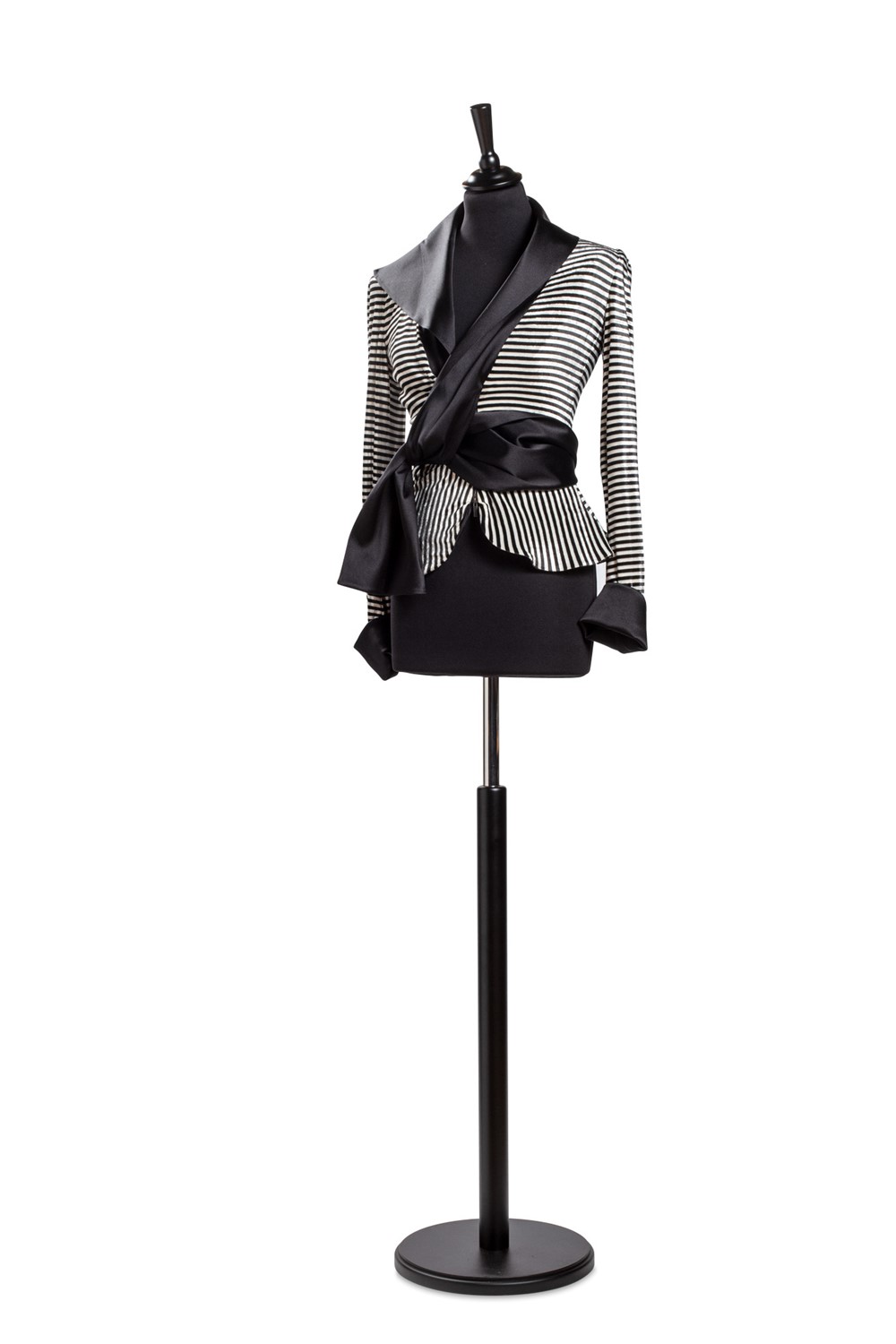 in viscosa e tessuto, a strisce bianche e nere, fodera color nera, tg 40 italiana