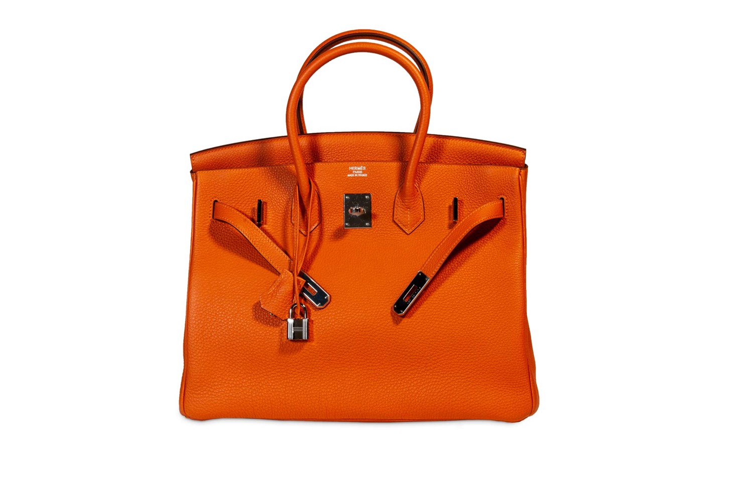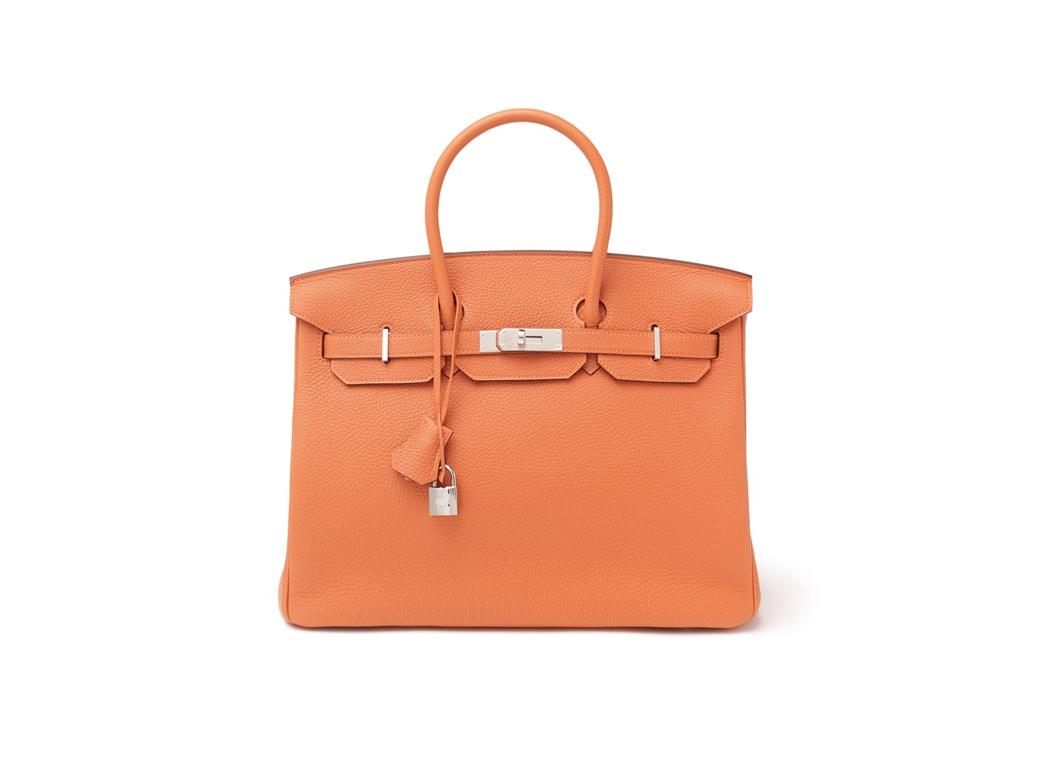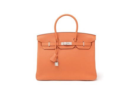 in pelle togo color arancione, dettagli in palladio, con sacchetto, scatola e pellicole protettive (mai usata)