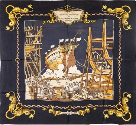 Hermès - Lancement d'un Vaisseau au Chantiers Navals du Roy silk twill scarf, 1964