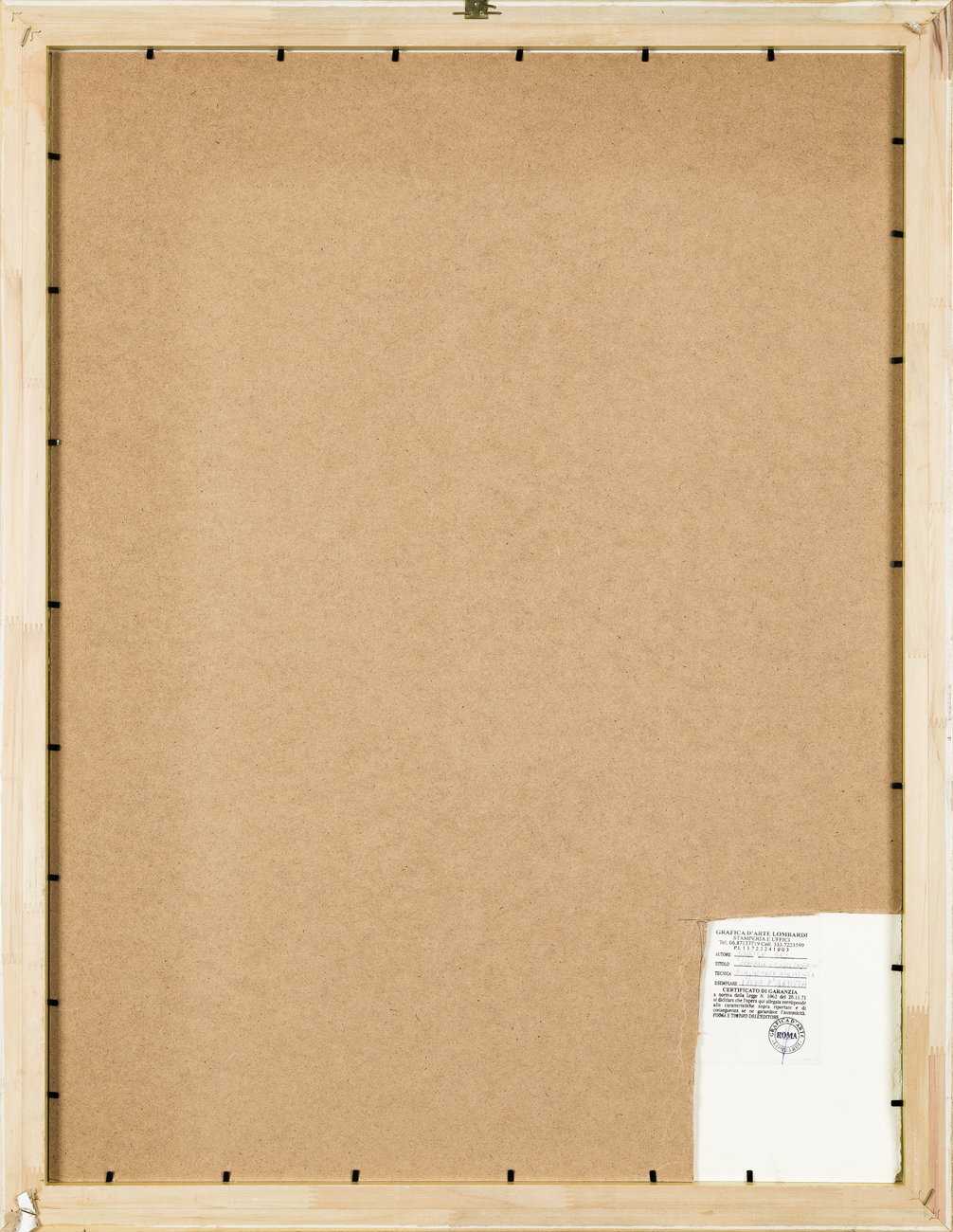 Etichetta delle Grafiche d'Arte Lombardi (RM) al retro