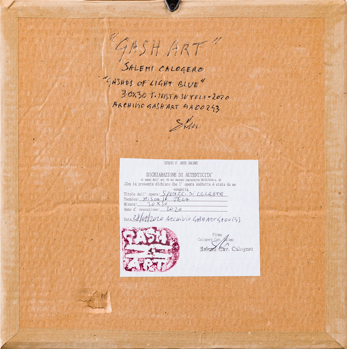 Firma, titolo, tecnica, datazione e numero di archivio al retro