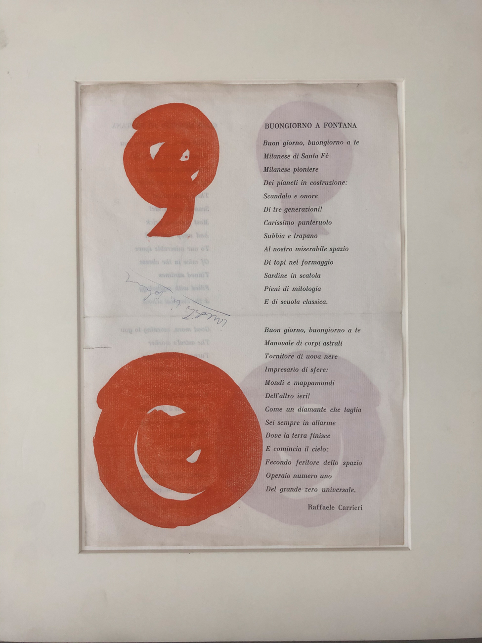 Stampa illustrata della poesia 'Buongiorno a Fontana' di Raffaele Carrieri