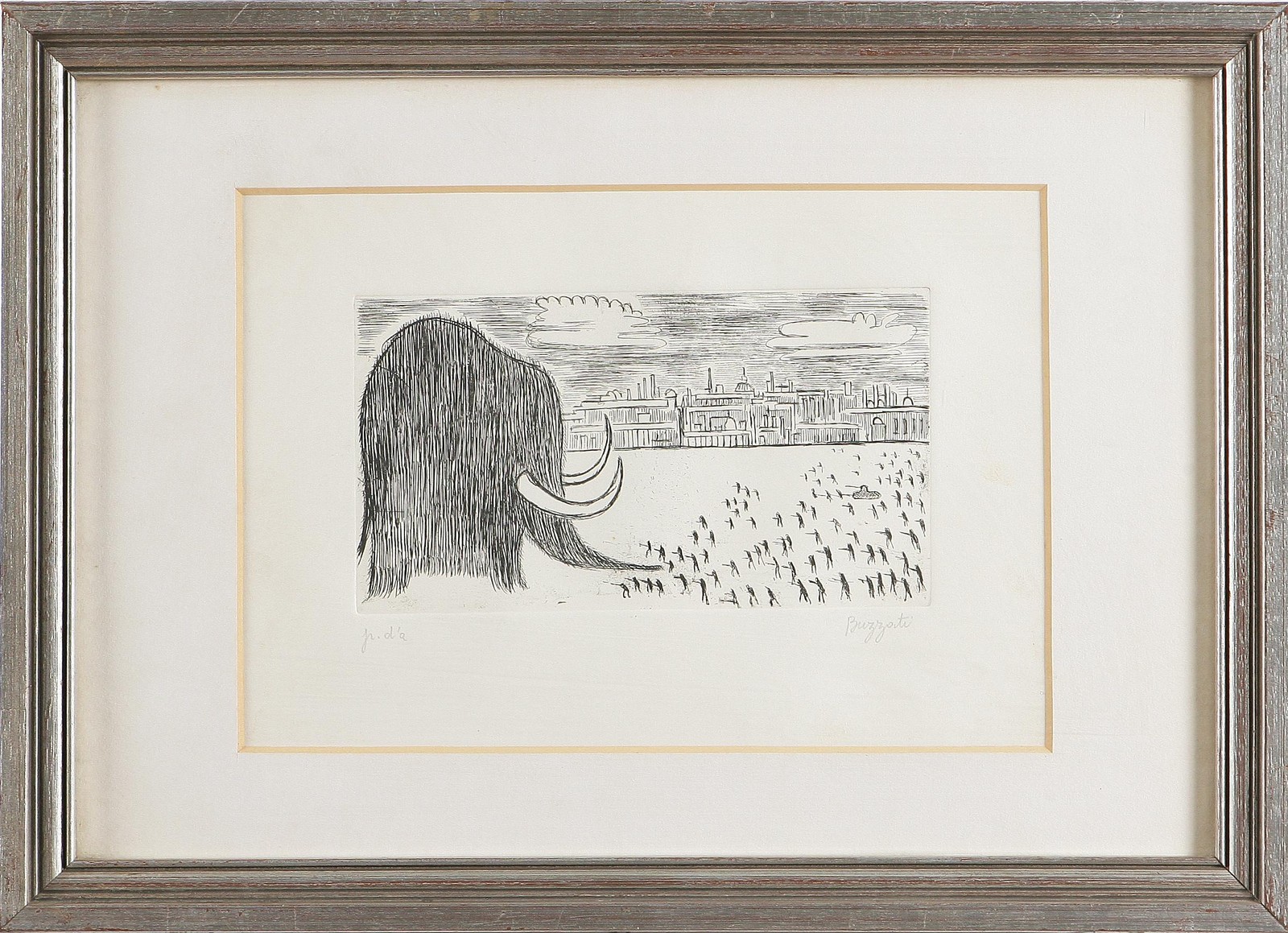 BUZZATI DINO (1906 - 1972) Mammut. Litografia. Cm 24x34,5. P.A. in basso a sinistra a matita. Firma in basso a destra a matita.