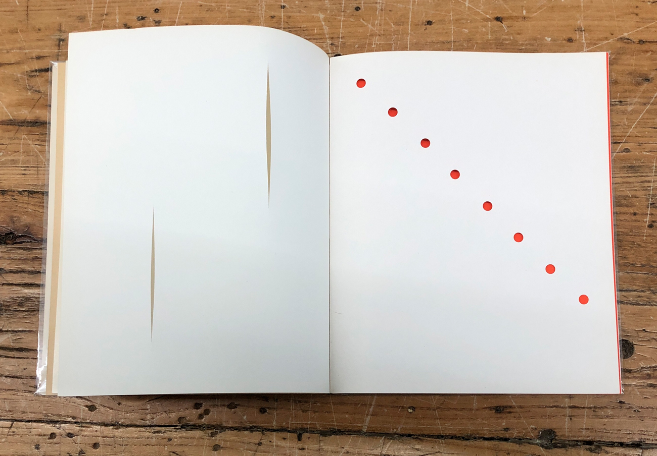 Catalogo - monografia dell'Artista, con taglio sulla copertina e pagine fustellate e sagomate all'interno su indicazione dell'Artista, edito in occasione dell'esposizione tenutasi presso Galleria Flaviana, Locarno, 1966