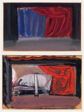 Mario Sironi Sassari 1885 - Milano 1961 Studi di scenografia per il Don Carlos, 1950 Tempera su carta, cm. 18x26 e cm. 16x25 Firma in basso a destra di ognuno: Sironi. Al verso sulla cornice: etichetta La Medusa, Roma, con n. 87: fotocopia di una lettera di Mario Penelope a Claudio Bruni, Roma, 14 dicembre 1985. Storia: Collezione Estorik, Londra; Galleria La Medusa, Roma; Collezione privata, Roma; Collezione privata Esposizioni: Mario Sironi, opere 1902 - 1960, a cura di Mario Penelope, Sassari, Padiglione dell'artigianato sar- do, 26 ottobre - 24 novembre 1985, cat. pp. 80, 81, nn. 30, 31, illustrate a colori.