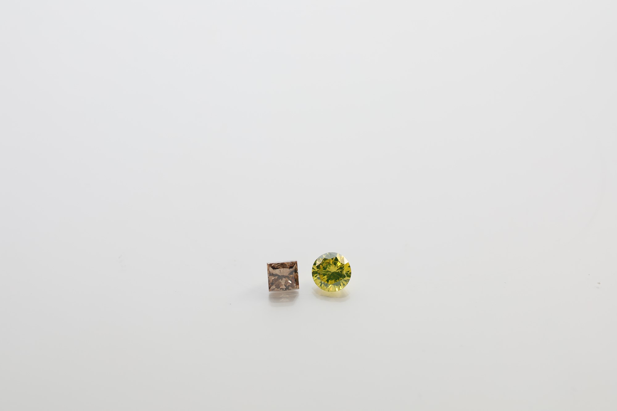 taglio brillante color giallo intenso, taglio princess color cognac ct. 1,24 totale.