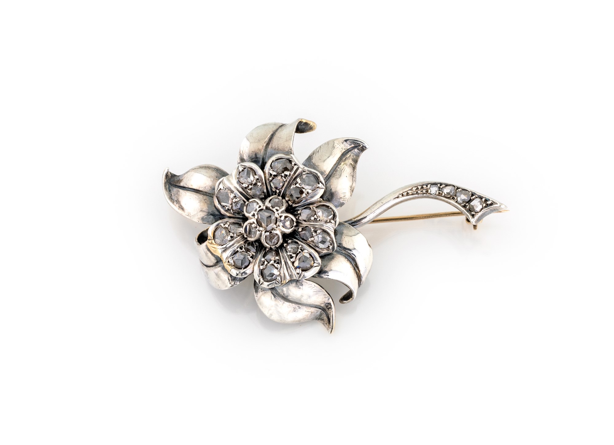 SPILLA ANTICA CON FIORE E ROSE DI DIAMANTI