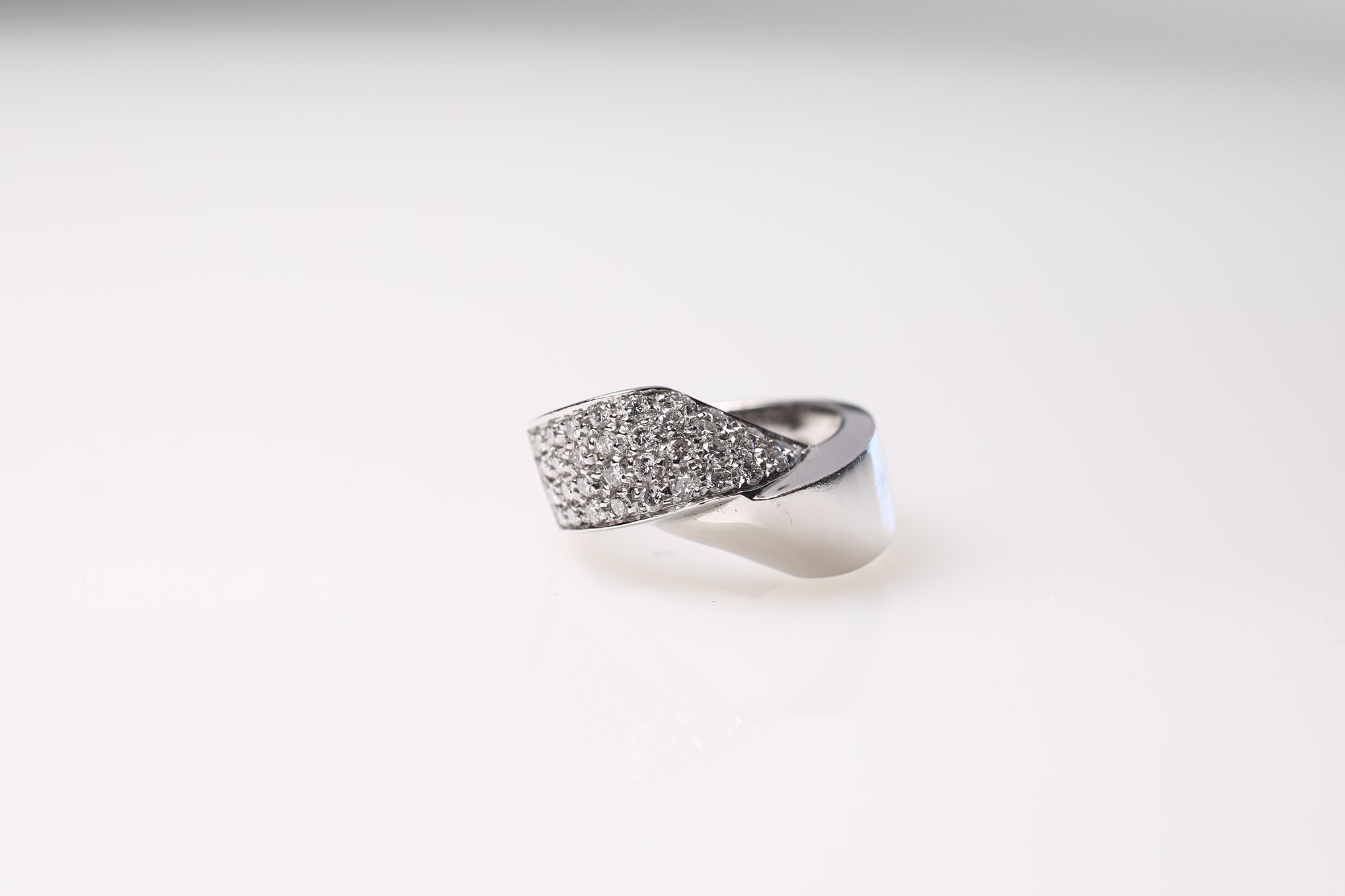 a pave di brillanti ct 0,55 e lastra lucida in oro bianco 750/000, g 9,00, misura 14,5