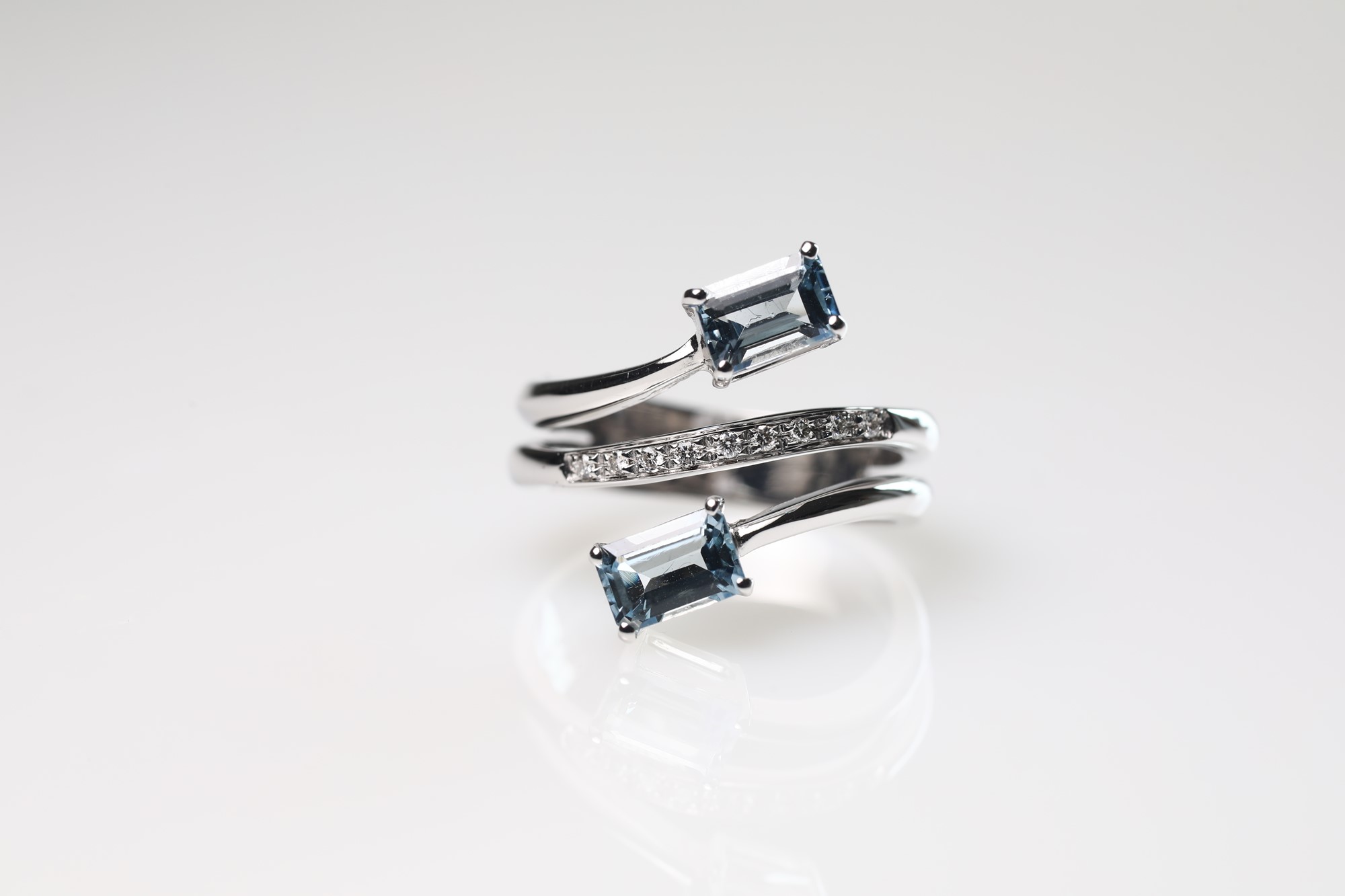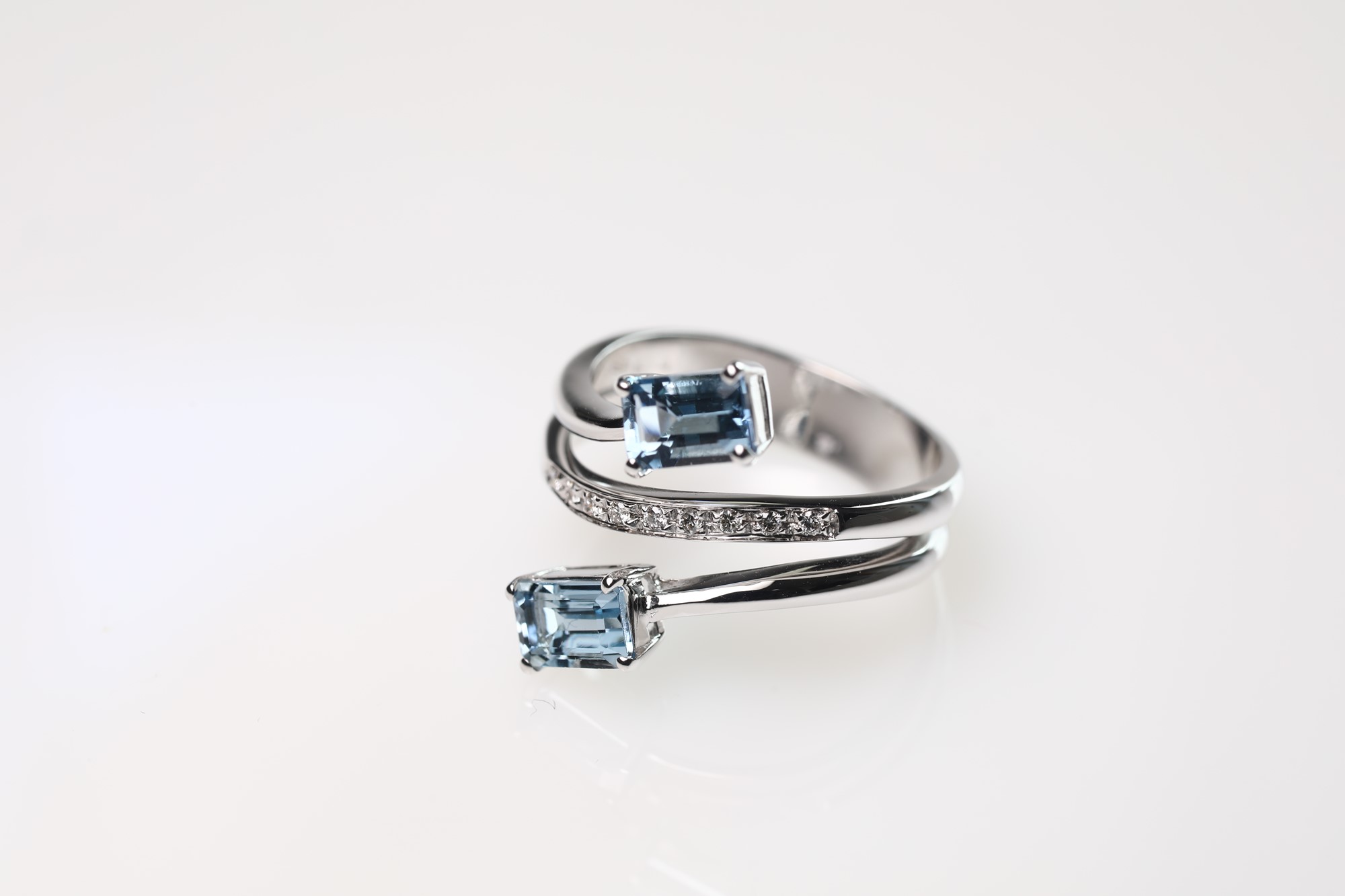 ANELLO CONTRARIE' CON ACQAMARINE CT 1,40