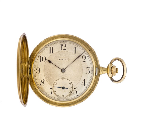 SURETE Orologio da tasca in oro 18K, savonnette Epoca inizio secolo XX Quadrant