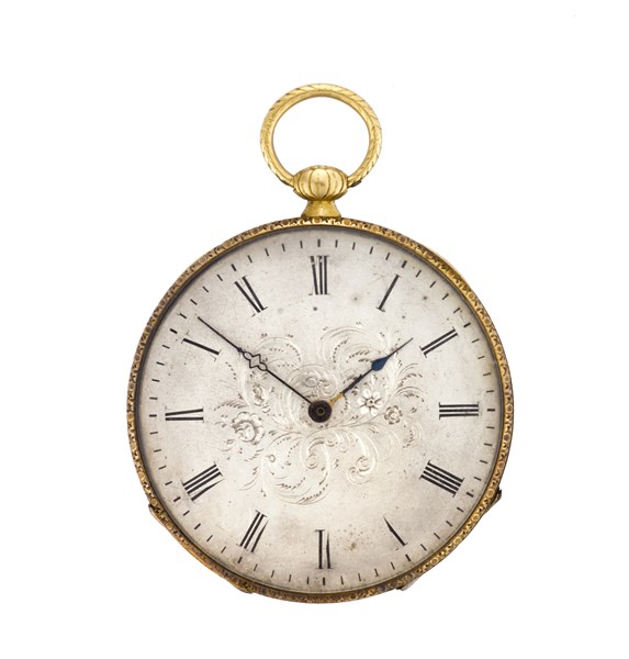 ANONIMO Orologio da tasca in oro 18K con decoro in smalti Epoca metà secolo XIX