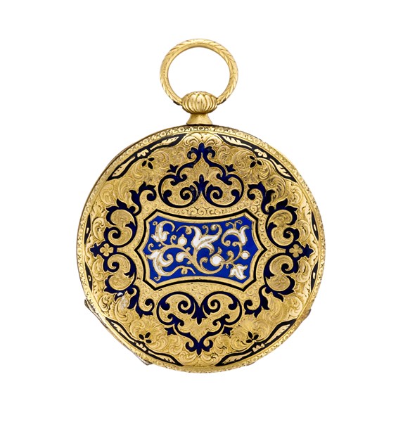 18K gold pocket watch with enamel decoration