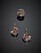 Demi-parure composta da orecchini ed anello in oro giallo 333/1000 e argento rifiniti con gemme naturali e sintetiche di vari colori, anello misura 16/56, orecchini lungh. cm 3.50 circa, complessivi g 20,70 circa. Marcati 697 NA.