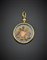 Pendente in oro giallo e vetro con composizione di fiori secchi, g 9,60 circa, diam. cm 3,20 circa.