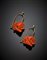Carved orange variegated coral rosebud pendant earrings, g 22.30 circa, length cm 4.30 circa. Marked 466 NA. (defects and repair)